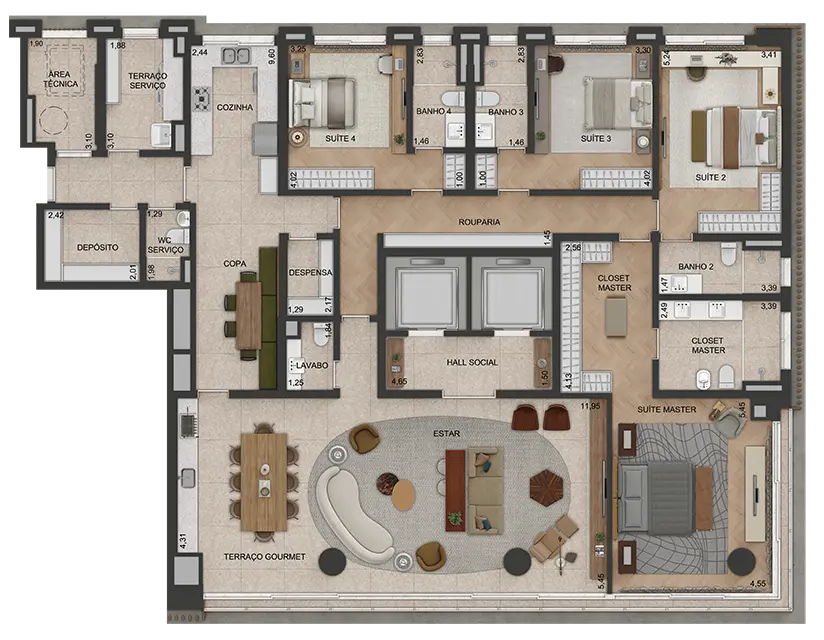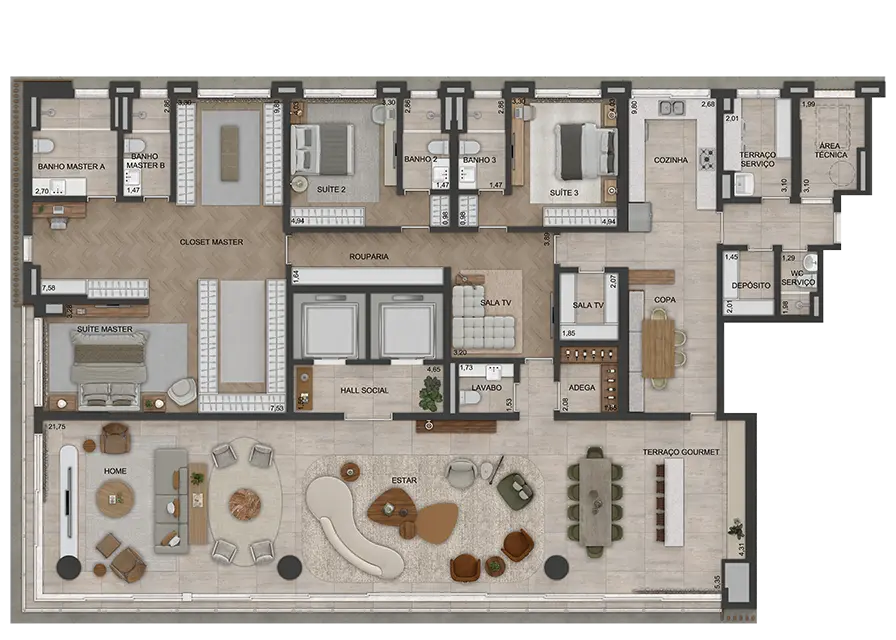PAVIMENTOS: 29 pavimentos tipo + pavimentos duplex inferior + pavimentos duplex superior